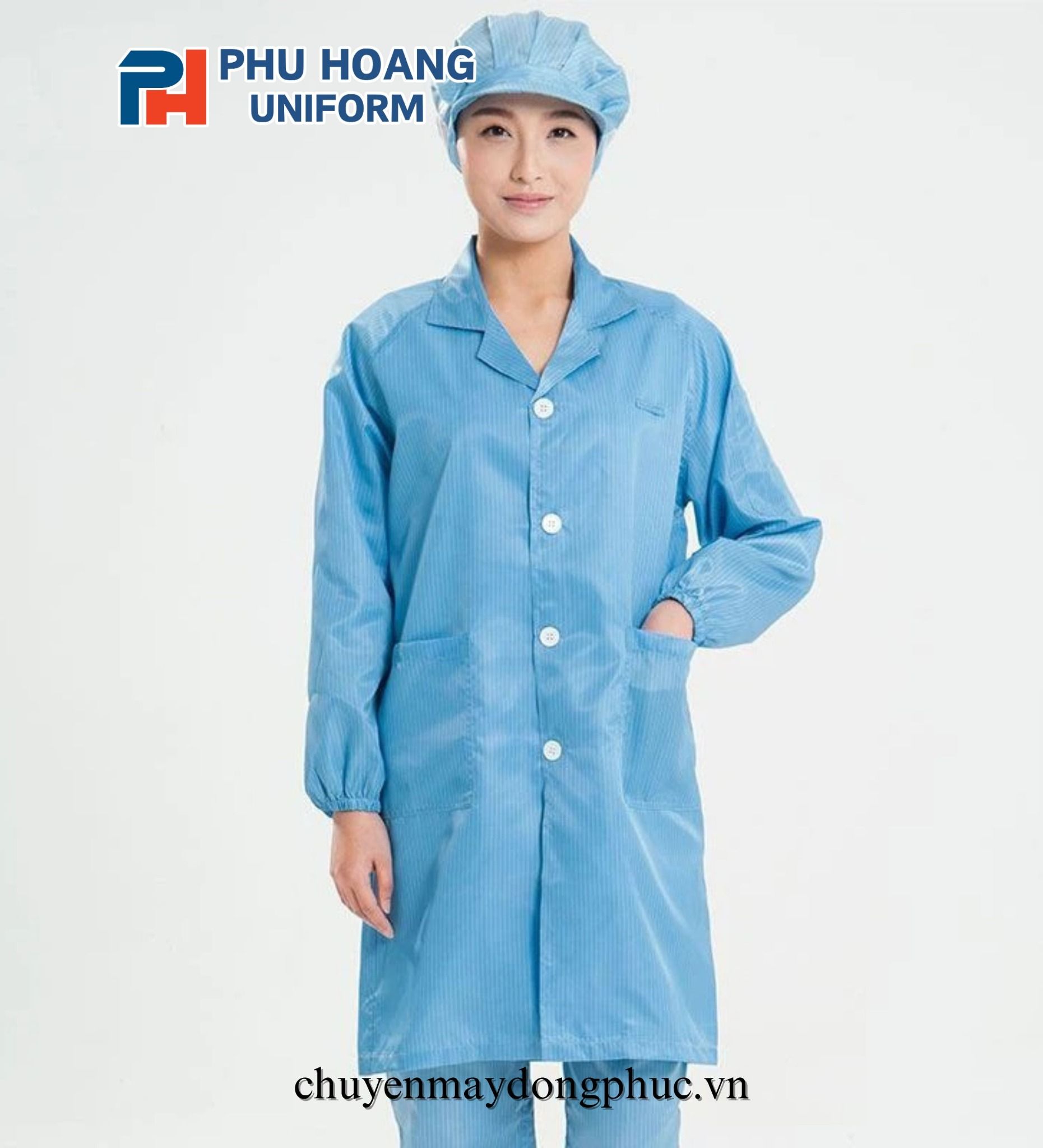 Công ty Phú Hoàng với hơn nhiều năm kinh nghiệm trong lĩnh vực sản xuất và thiết kế bộ đồ phòng sạch chống tĩnh điện, tự hào là đối tác tin cậy của nhiều đối tác. Với tâm huyết và sự chuyên nghiệp, chúng tôi cam kết mang đến cho khách hàng những sản phẩm chất lượng cao. Các hạng mục chúng tôi may bao gồm: