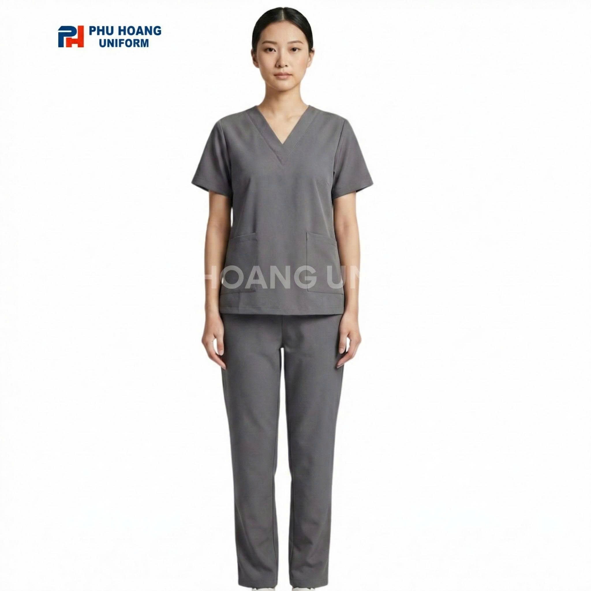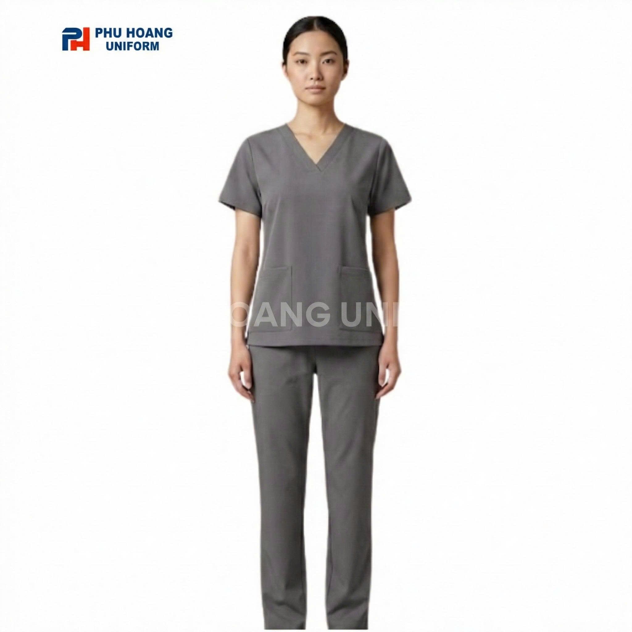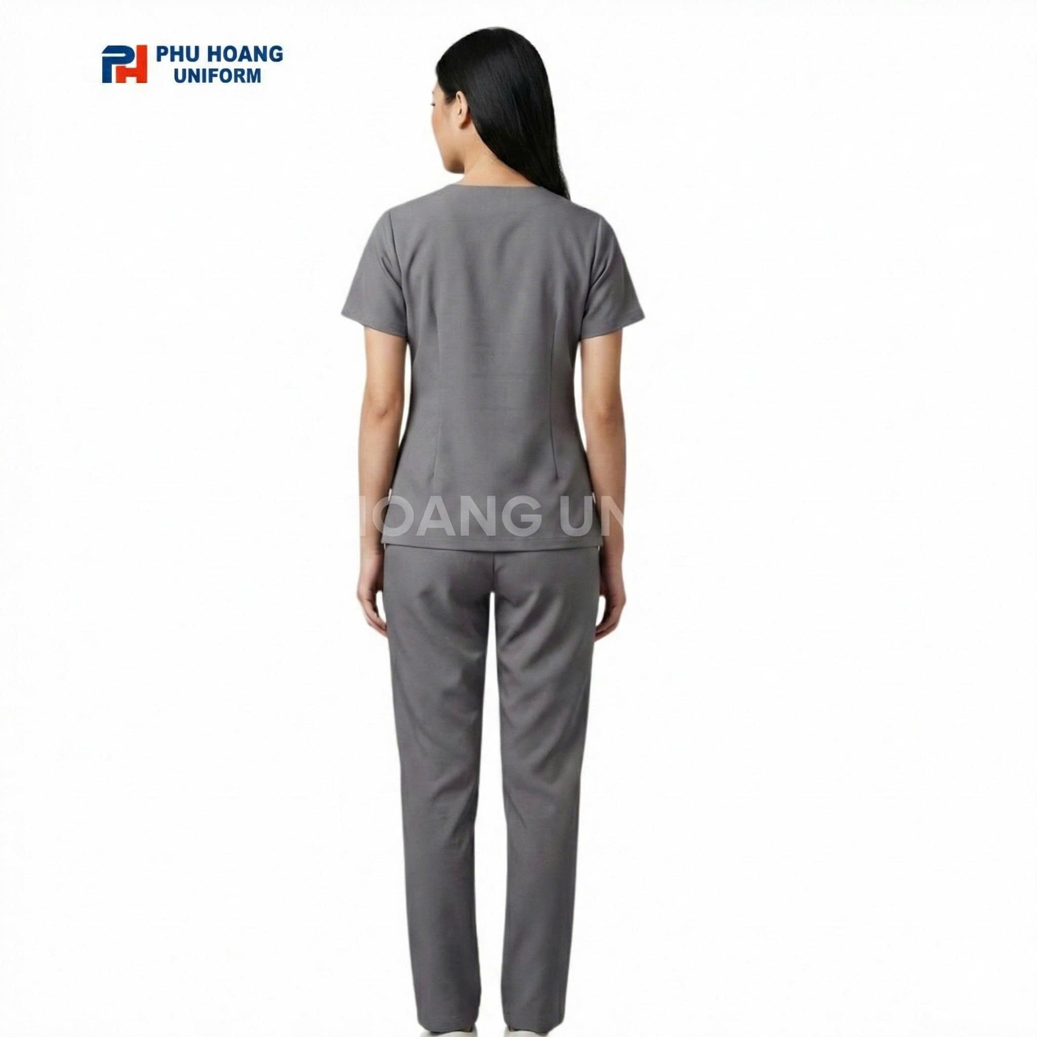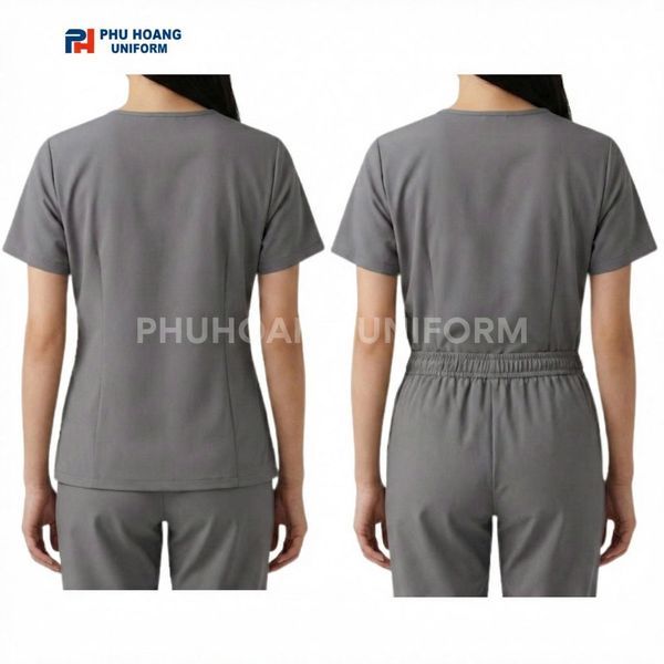 Với gam màu ghi trung tính, kiểu dáng cổ tim tinh tế cùng thiết kế tối ưu cho chuyển động, mẫu scrubs này phù hợp với nhiều vị trí công việc khác nhau, từ bác sĩ, điều dưỡng đến kỹ thuật viên và nhân viên y tế hỗ trợ.
