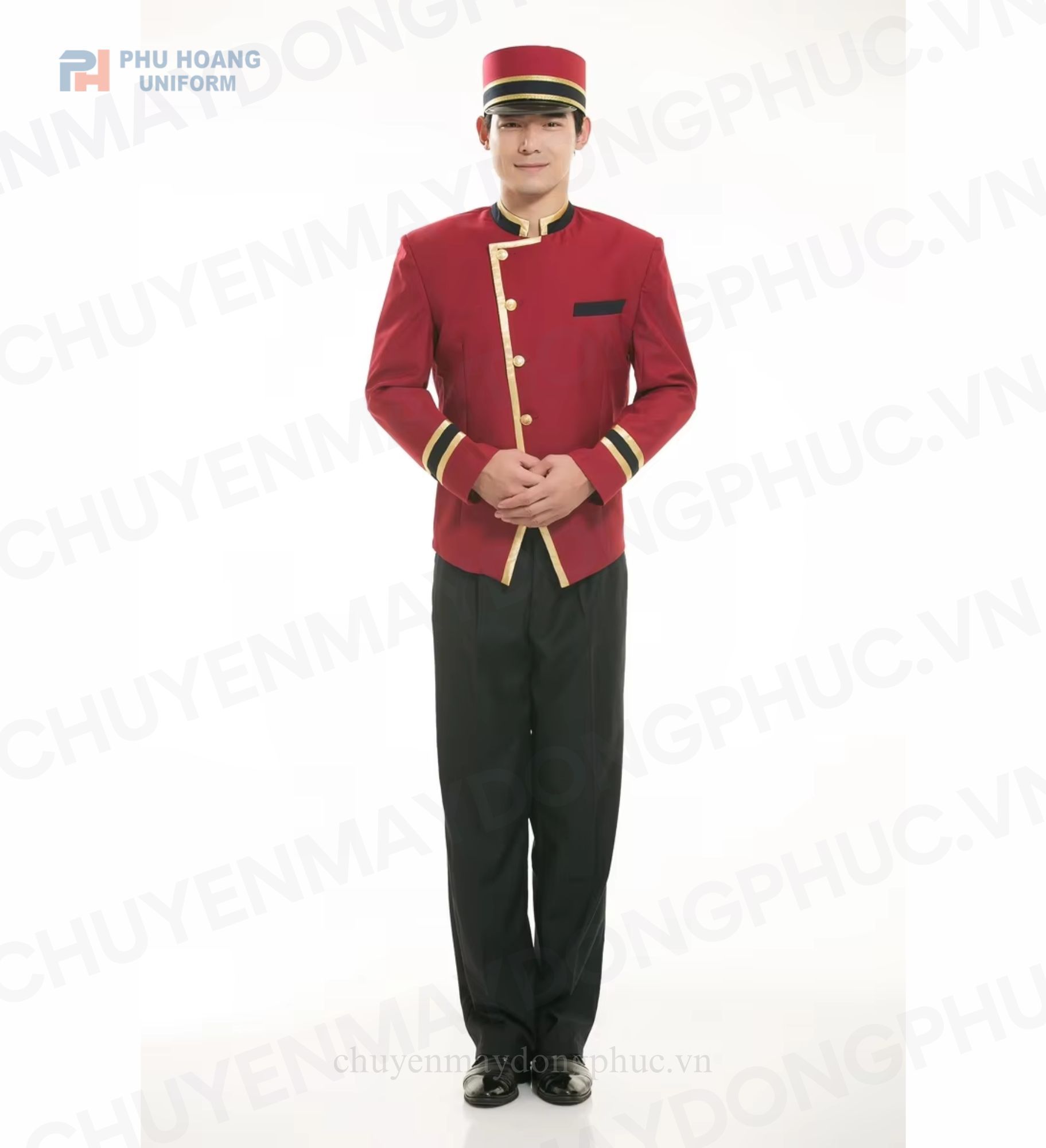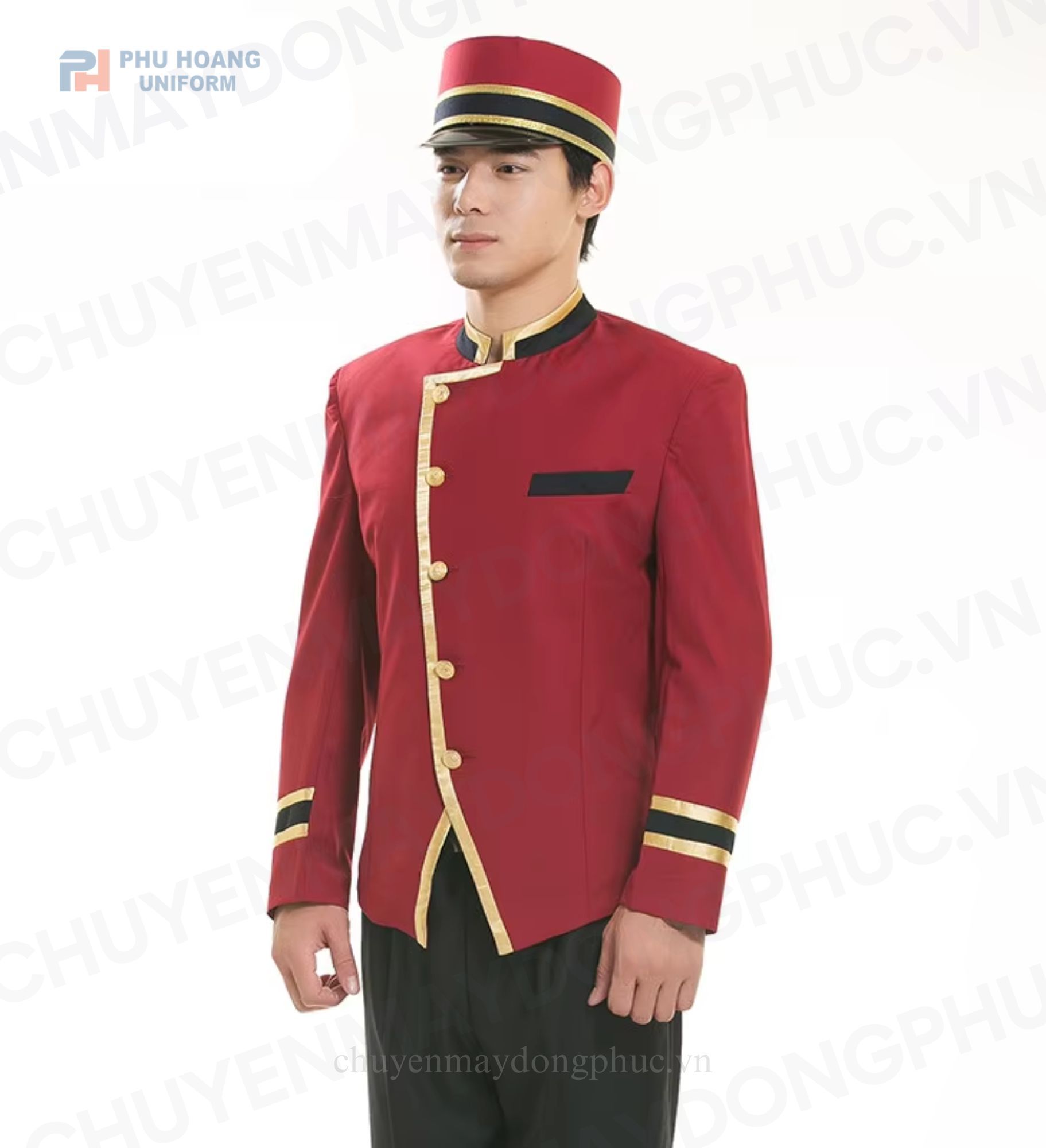 - Ngoài tông đỏ đô chủ đạo, sản phẩm có thể đặt may theo các màu sắc khác như xanh navy, đen, hoặc trắng để phù hợp với nhận diện thương hiệu của khách sạn.