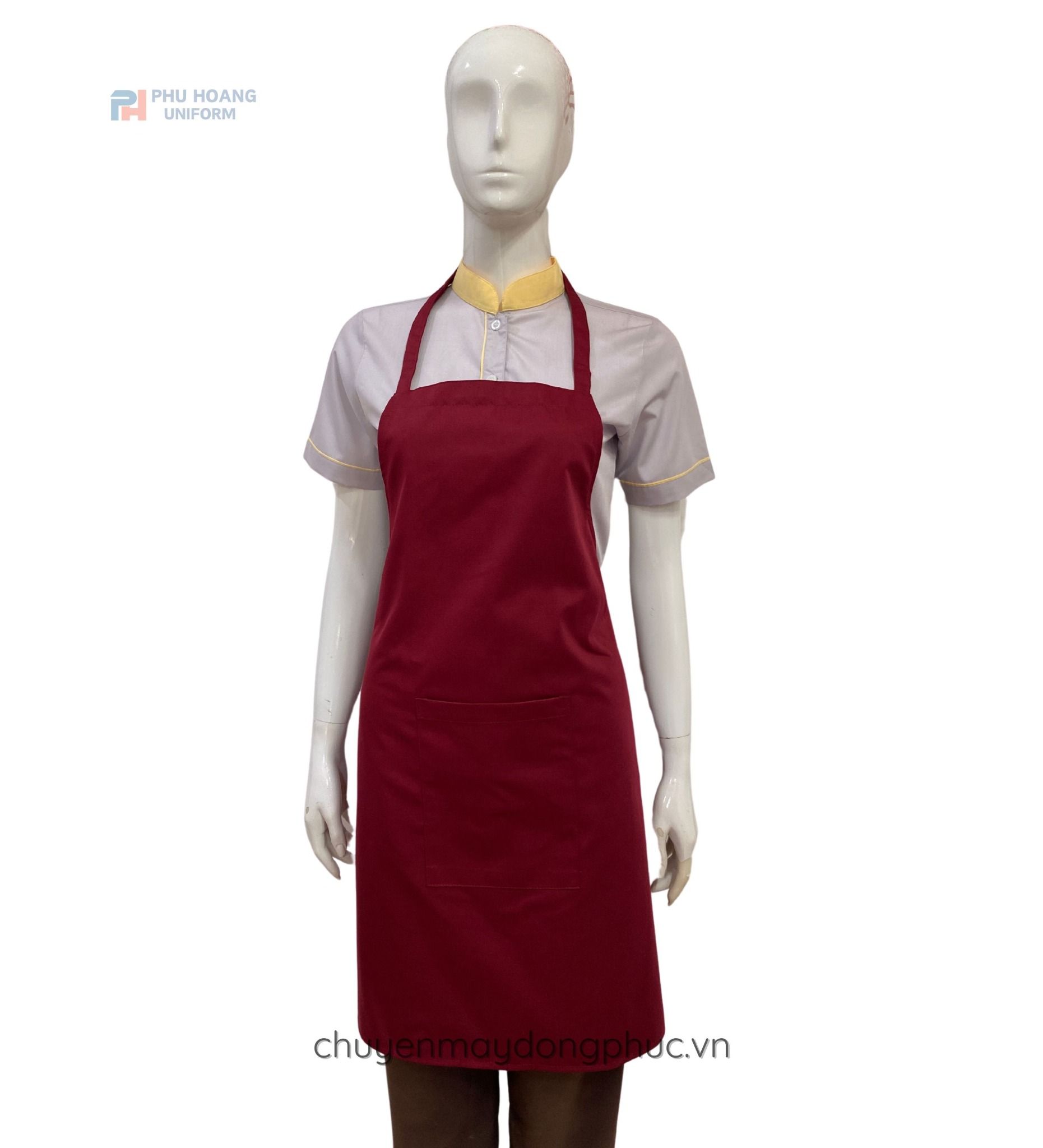 - Màu sắc: Tạp dề yếm màu đỏ đô
